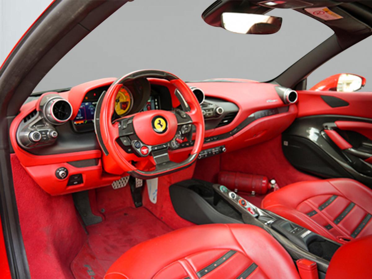 The 2021 Ferrari F8 Tributo Spider is a stunning open-top supercar that combines iconic Ferrari design with unmatched performance and advanced engineering. Its sleek, aerodynamic body features sharp lines, LED headlights, and prominent air intakes, all designed to maximize both aesthetics and functionality. The retractable hardtop seamlessly integrates into the design, offering the thrill of open-air driving in just 14 seconds.