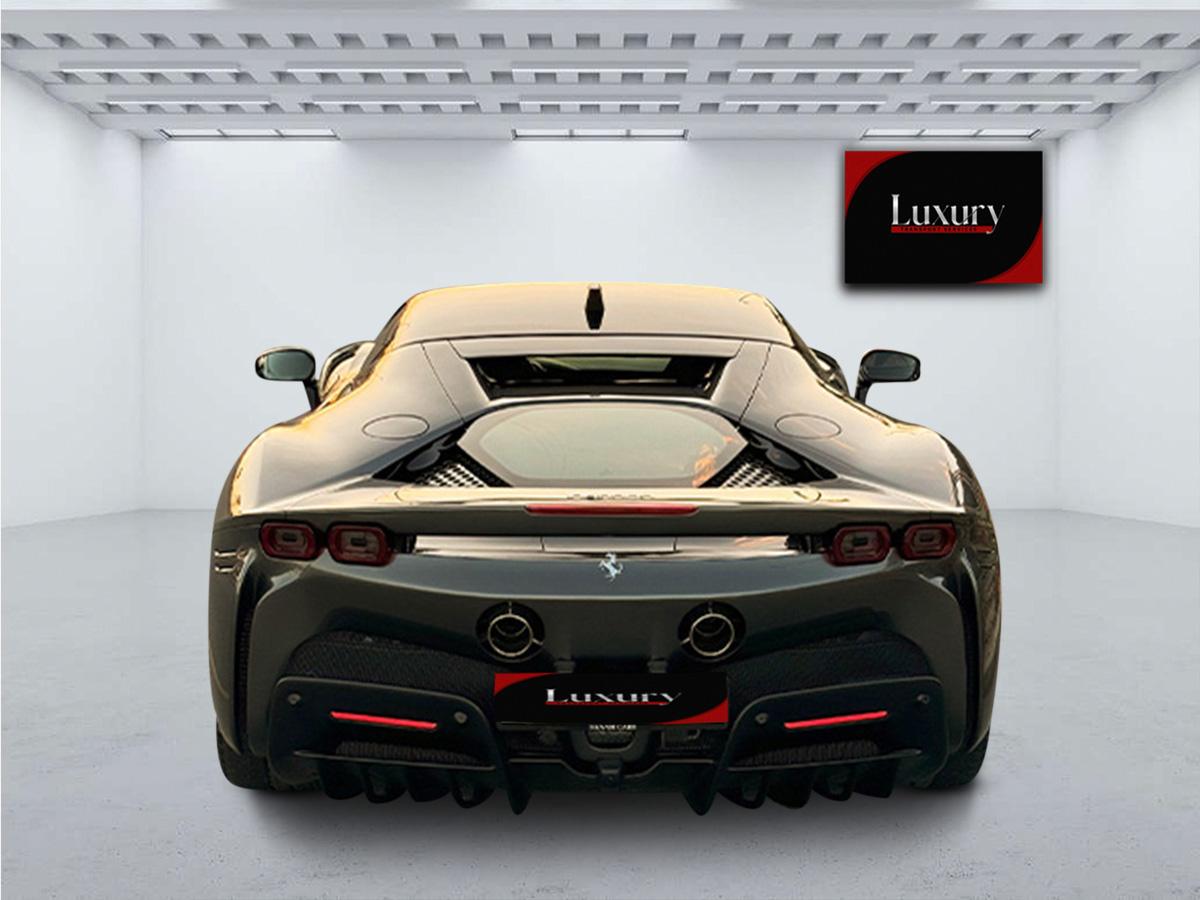 Inside, the SF90 offers a high-tech cockpit with a 16-inch curved digital instrument cluster, a sleek infotainment system, and multifunction controls on the steering wheel. Luxurious materials, such as premium leather and carbon-fiber accents, provide a balance of comfort and sportiness. Despite its advanced technology, the layout remains driver-focused, reflecting Ferrari’s commitment to performance.