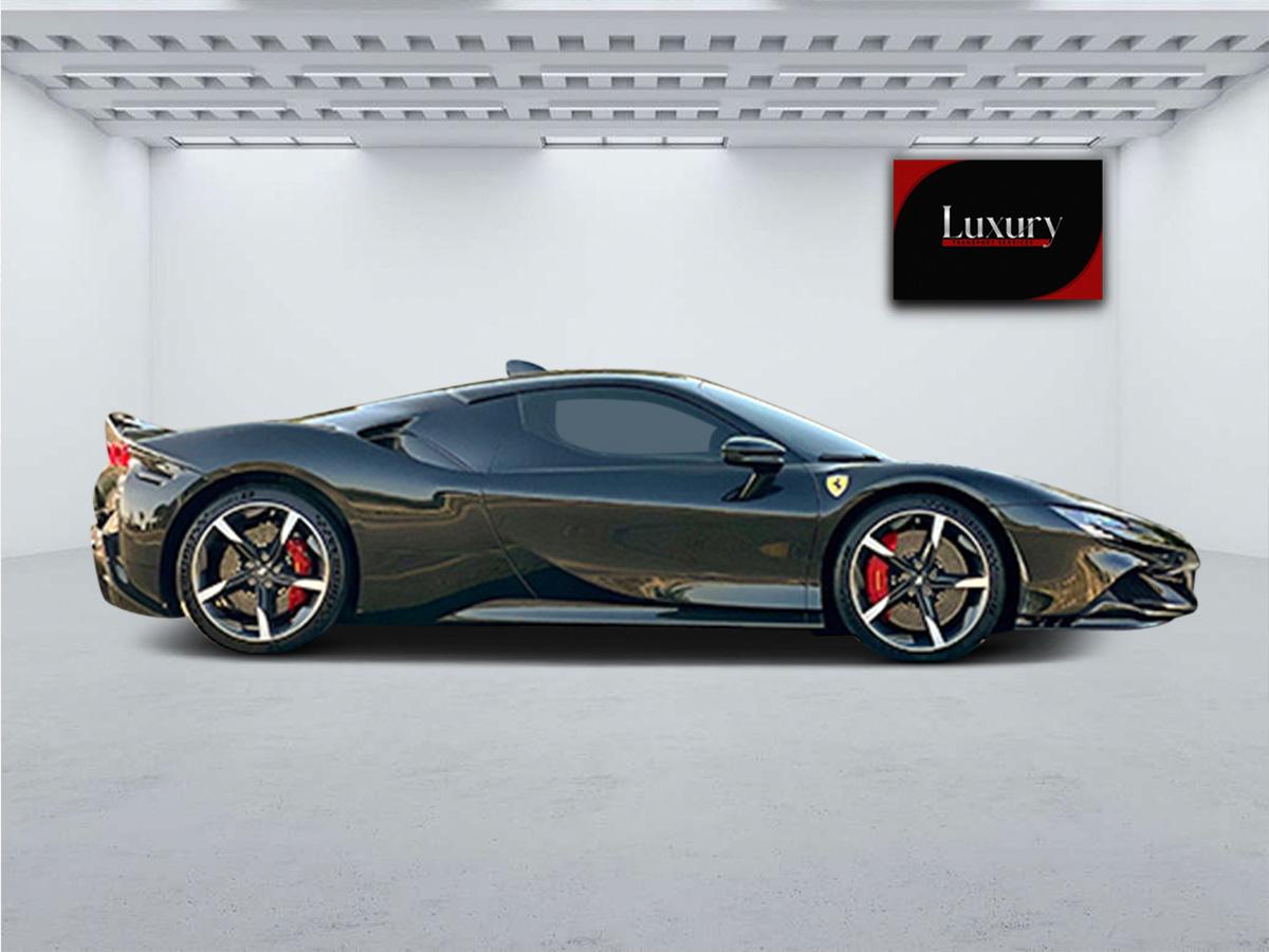 Inside, the SF90 offers a high-tech cockpit with a 16-inch curved digital instrument cluster, a sleek infotainment system, and multifunction controls on the steering wheel. Luxurious materials, such as premium leather and carbon-fiber accents, provide a balance of comfort and sportiness. Despite its advanced technology, the layout remains driver-focused, reflecting Ferrari’s commitment to performance.
