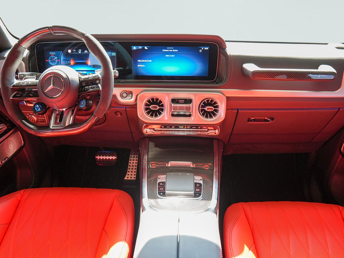 At its heart lies a 4.0L twin-turbocharged V8 engine, delivering an exhilarating 577 horsepower and 627 lb-ft of torque. Paired with a 9-speed AMG SPEEDSHIFT® TCT transmission and 4MATIC all-wheel drive, the G63 sprints from 0 to 60 mph in just 4.3 seconds, offering thrilling acceleration. Advanced features like AMG Ride Control suspension and configurable driving modes provide a balance of on-road agility and off-road dominance.